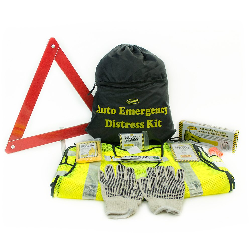 Mayday’s 10017 Auto Emergency Distress Kit has 10 pieces and is used when an accident occurs and when waiting for emergency personnel to arrive.  Everyone should have one of these economical kits in their vehicle.  It is the most basic kit to have for road emergencies.