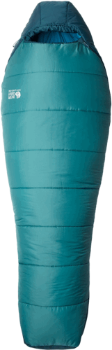This is a heavy-duty sleeping bag designed for sub-zero temperatures. The Mountain Hardwear Bozeman sub-zero sleeping bag features its insulation material and size.