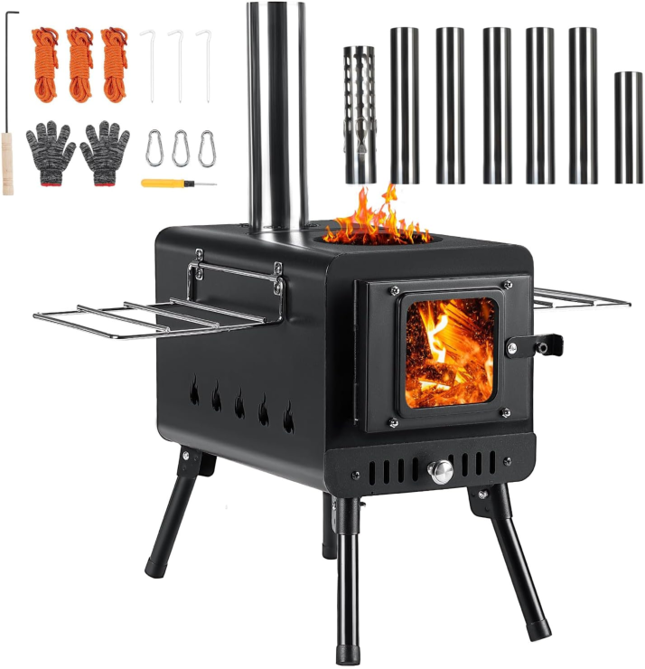 DEERFAMY Tent Stove, Burning Stove with 7 Section Chimney Pipes, Camping Stove Portable for Tent, Hot Tent Stove for Outdoor Heating & Cooking, Ice Fishing, Hunting, Black