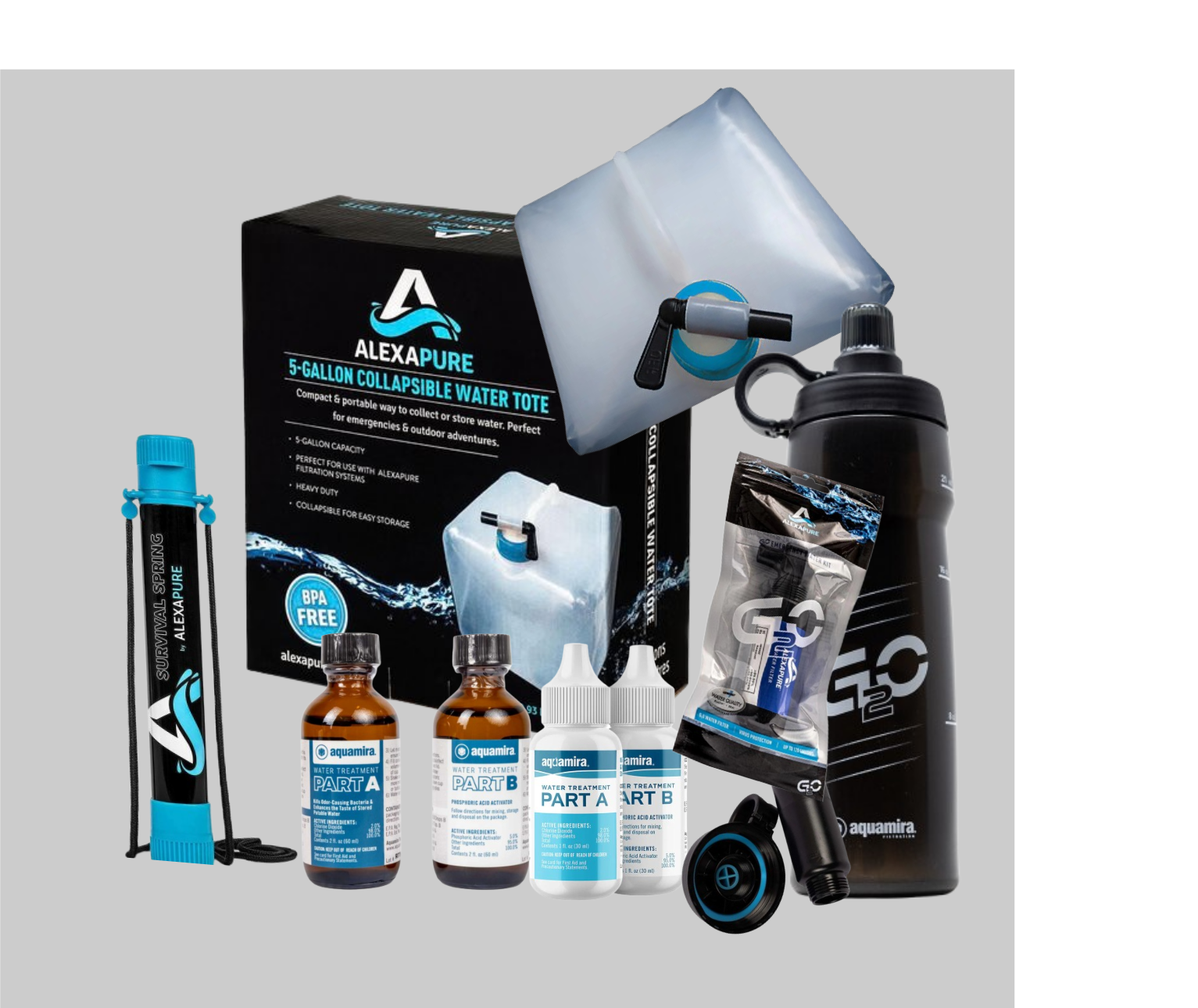 • The Aquamira and Alexapure’s with G2O Water Bottle makes drinkable water from ANY fresh water source