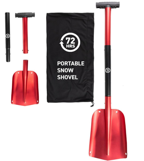 Overmount Folding Emergency Snow Shovel for Car – 32″ 42″ Small & Compact Tool with Ice Scraper and Carrying Bag- Lightweight Aluminum Shovels for Snow Camping, Skiing Snowmobiles.